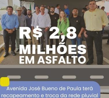 R$ 2,8 milhões garantidos para recapeamento da Avenida José Bueno de Paula